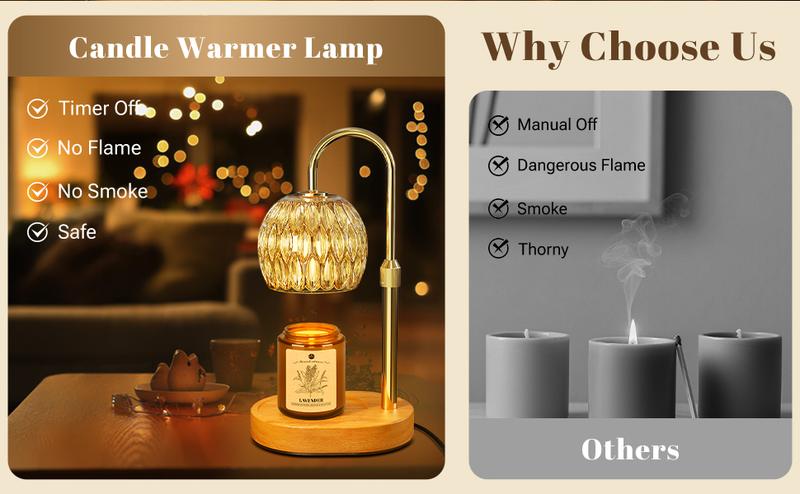Warmembrace Candle Warmer Lamp, with Free Scented Candle and 2 Bulbs, Height Adjustable with Timer, Unique Boutique Candle Warm Lamp for Home & Bedroom Decor, Ideal Gift for Birthday/Mother'S Day, Halloween Gifts, Christmas Gifts